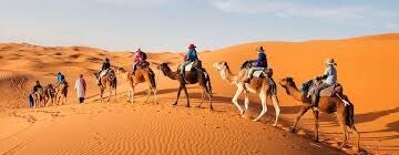 Le lendemain, vous ferez une balade à dos de dromadaire pour admirer le levé du soleil. Puis aprés un petit déjeuner, vous poursuivrez avec une excursion de 3 heures en 4x4. Au programme, la rencontre authentique avec un bédouin, qui vous ouvrira sa culture autour d'un thé, puis la visite d'un village français, témoin des temps du protectorat. Là-bas, vous découvrirez la musique Gnawa, avant de déguster un savoureux couscous marocain. L'aprés-midi, l'aventure continue avec une heure de quad, puiss une escapade dans la plus grand centre commercial de la région à Risani, avant de continuer vers Erfoud. ce séjour est un véritable pont entre traditions, aventure et découverte humaine. Laissez-vous porter par la magie du Sahara, où chaque instant est une invitation au rêve et à l'émerveillement.